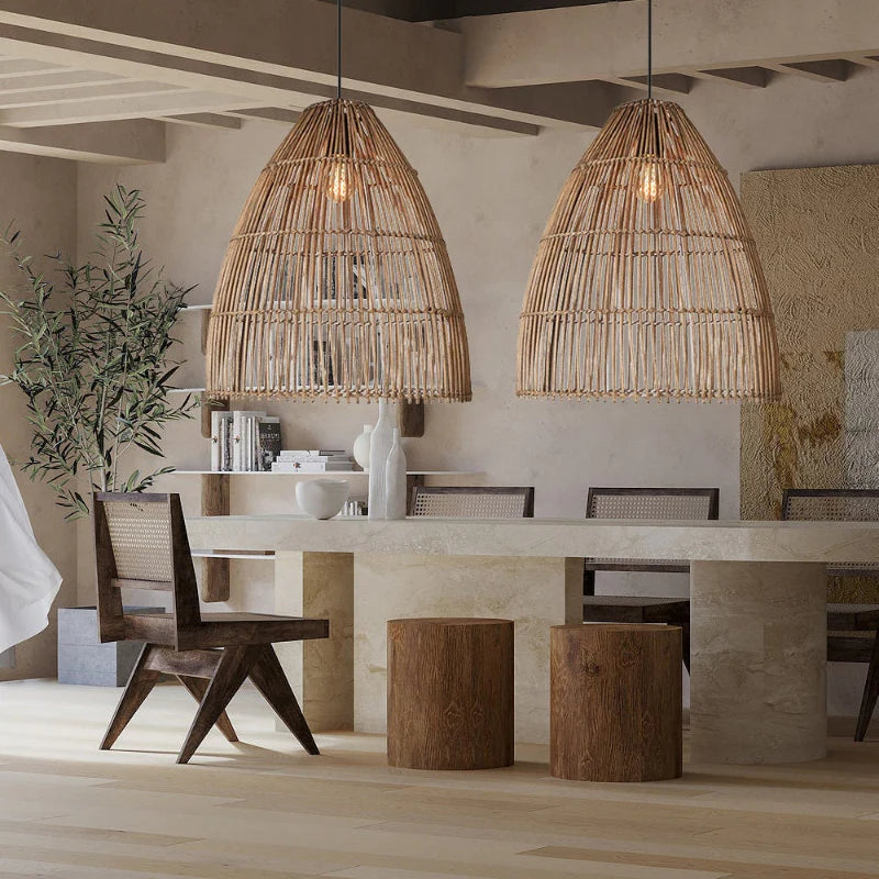 Découvrez l’atmosphère sereine que procure notre Suspension Rotin Allongée | LUMINA